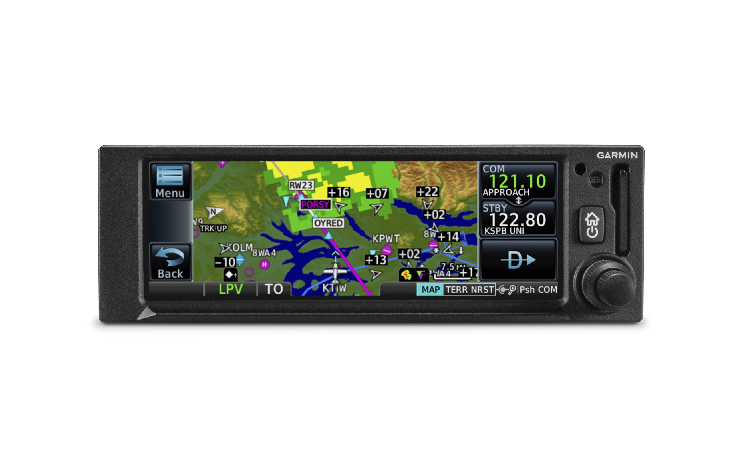 WAAS GPS navigation enables LPV approaches with minimums as low as 200’. Built-in 10-watt COMM radio offers 25 kHz or optional 8.33 kHz channel spacing. Automatically identify frequencies so you know who you’re talking to. Get extensive compatibility with Garmin flight displays or existing course deviation indicators Visualize your entire flight plan, including holds and approaches, on the 4.8” touch display. Use built-in Connext® wireless technology to connect to the Garmin Pilot™ or ForeFlight apps.